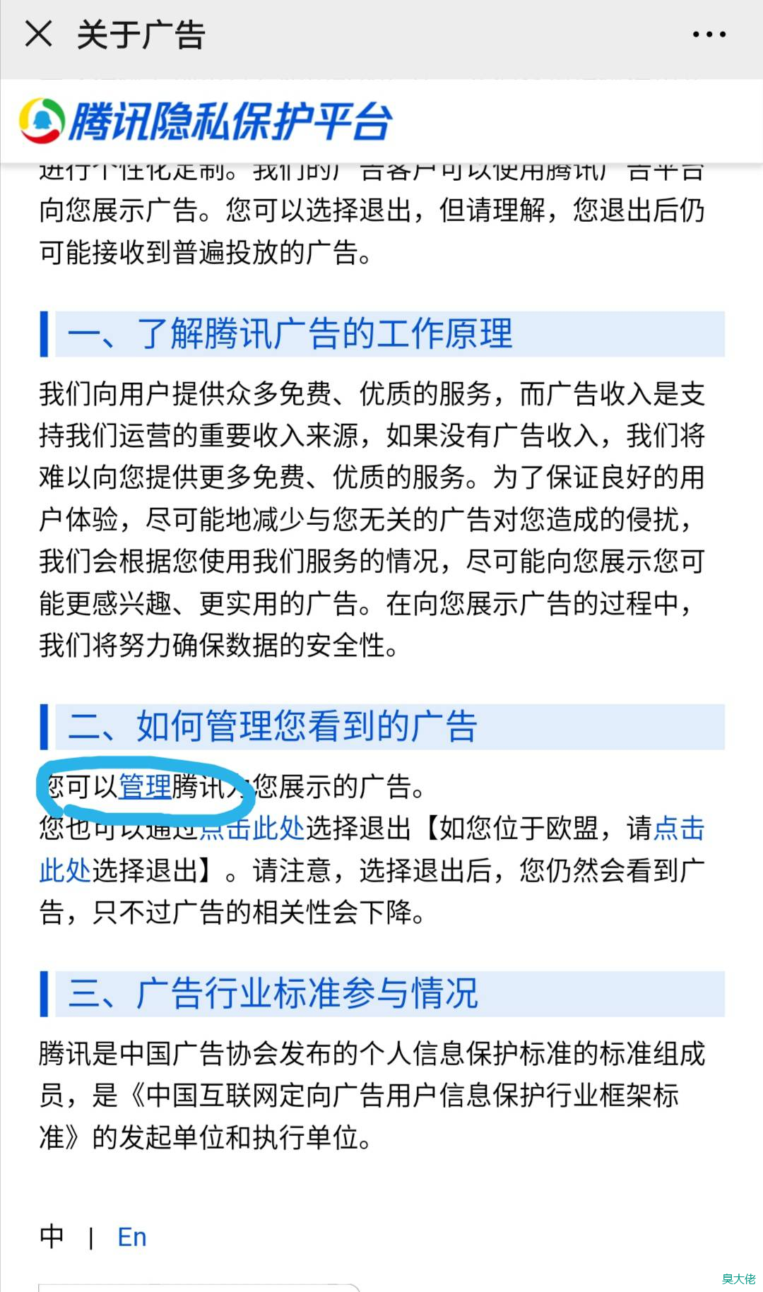 头部加粗段落里面有个蓝色可点击的《关于广告》,点击进入。