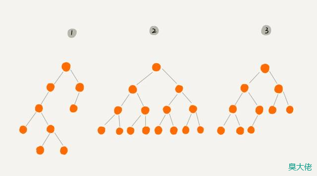 如果二叉树中除去最后一层节点为满二叉树,且最后一层的节点依次从左到右分布,则此二叉树被称为完全二叉树。上图编号③为完全二叉树。