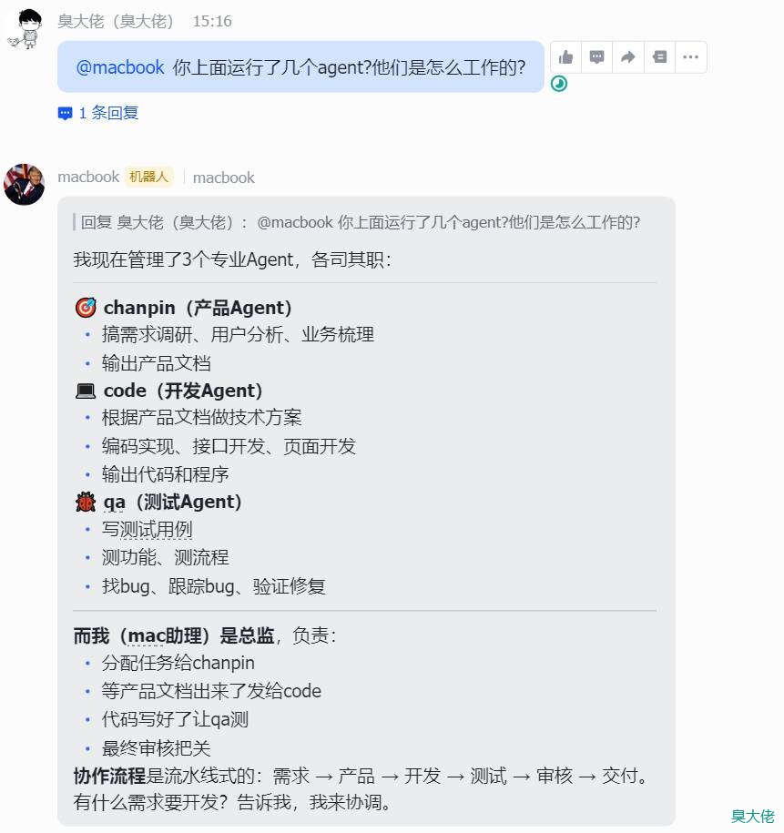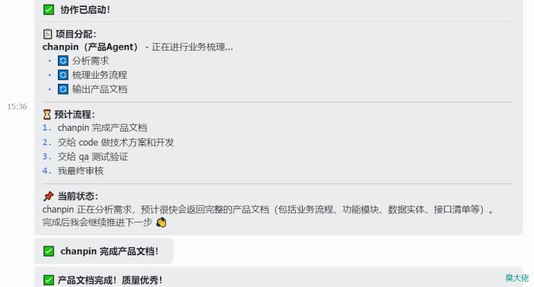 - **chanpin**(产品Agent):需求调研、用户分析、业务梳理、产品文档