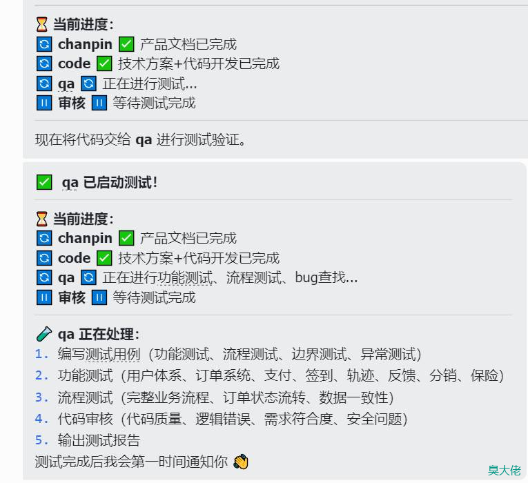 - **qa**(测试Agent):测试用例、功能测试、流程测试、Bug跟踪